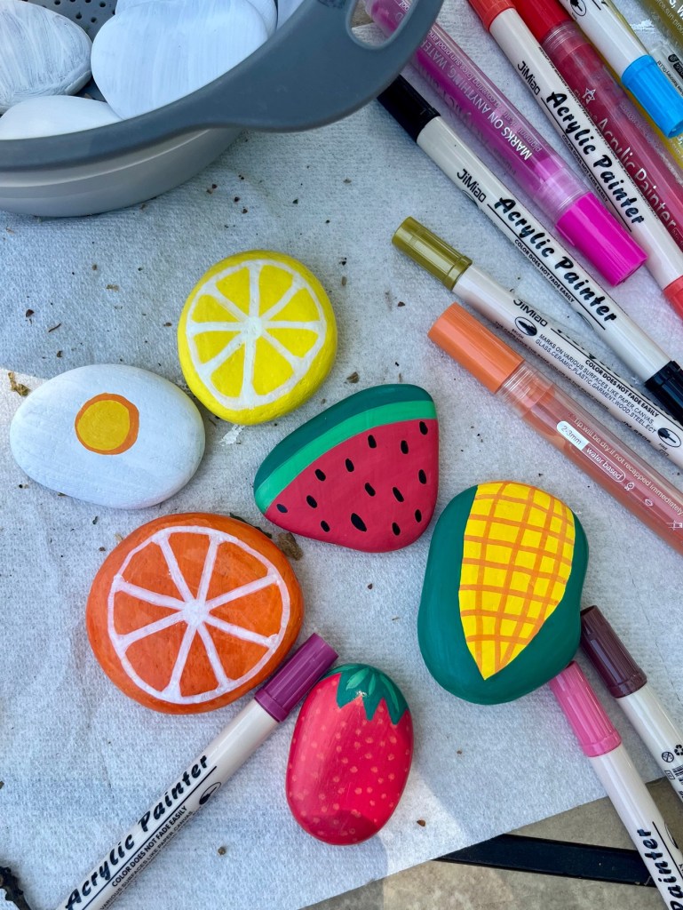 It’s so fun to hunt for rocks everywhere you go that stand out to you as something that could be a different food item! We have found a couple naturally that I have painted for food items