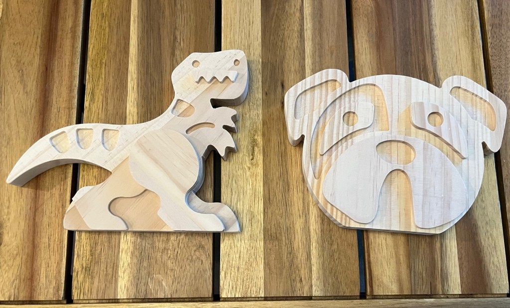 For our crafts this week we made dirt dough, dinosaur coloring sheets, painted a wooden dinosaur and dog, dirt painting and dot art!