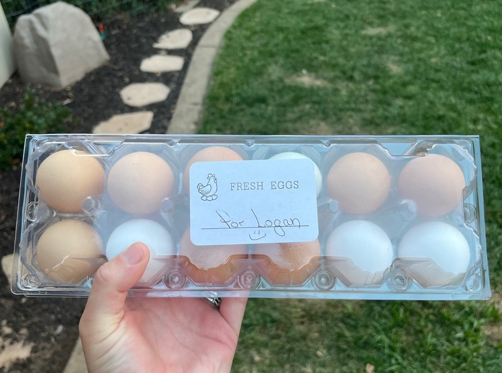 This week we made deviled eggs! Didn’t get a picture of the actual deviled eggs, but snapped this picture of the farm fresh eggs our neighbor so thoughtfully keeps us stocked with!