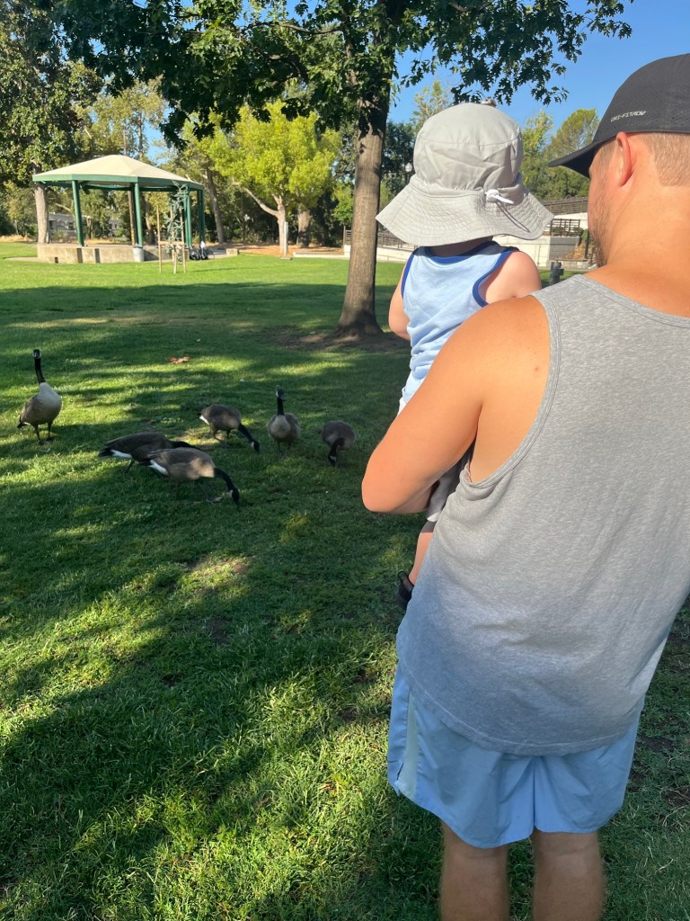 We took Dad downtown to feed the ducks and then played at a park where they had a sandbox for Logan to dig in!