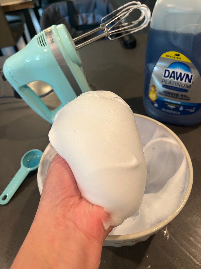 We did a dish soap sensory activity and this was cool! I didn’t think it would work because I have been using dish soap for years (obviously) and have never had it reach this consistency. It felt like shaving cream!!