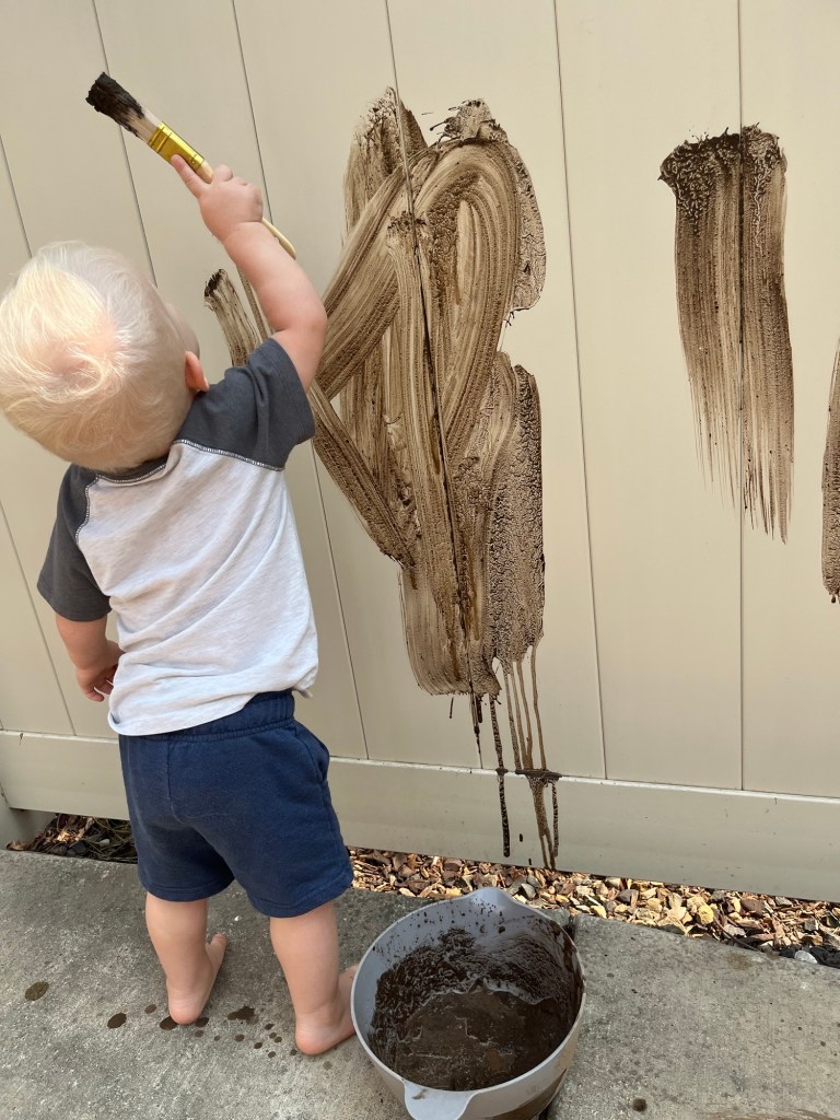 Mix dirt and water in a bowl, add some paintbrushes and a side of a house or fence and viola! Dirt painting!