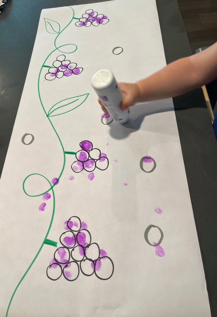 For our crafts this week we did grape stamping, painted some gumball machines, hand print ghosts and did some stained glass
