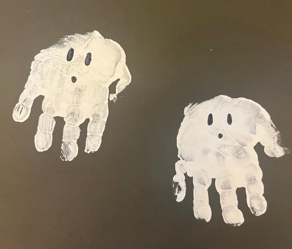With the cooler weather, I have gotten a small taste of fall! Which is so funny to say because it is still been in the 90s, but I’m just too excited! I will definitely be saving these little handprint ghosts for our Halloween decorations.