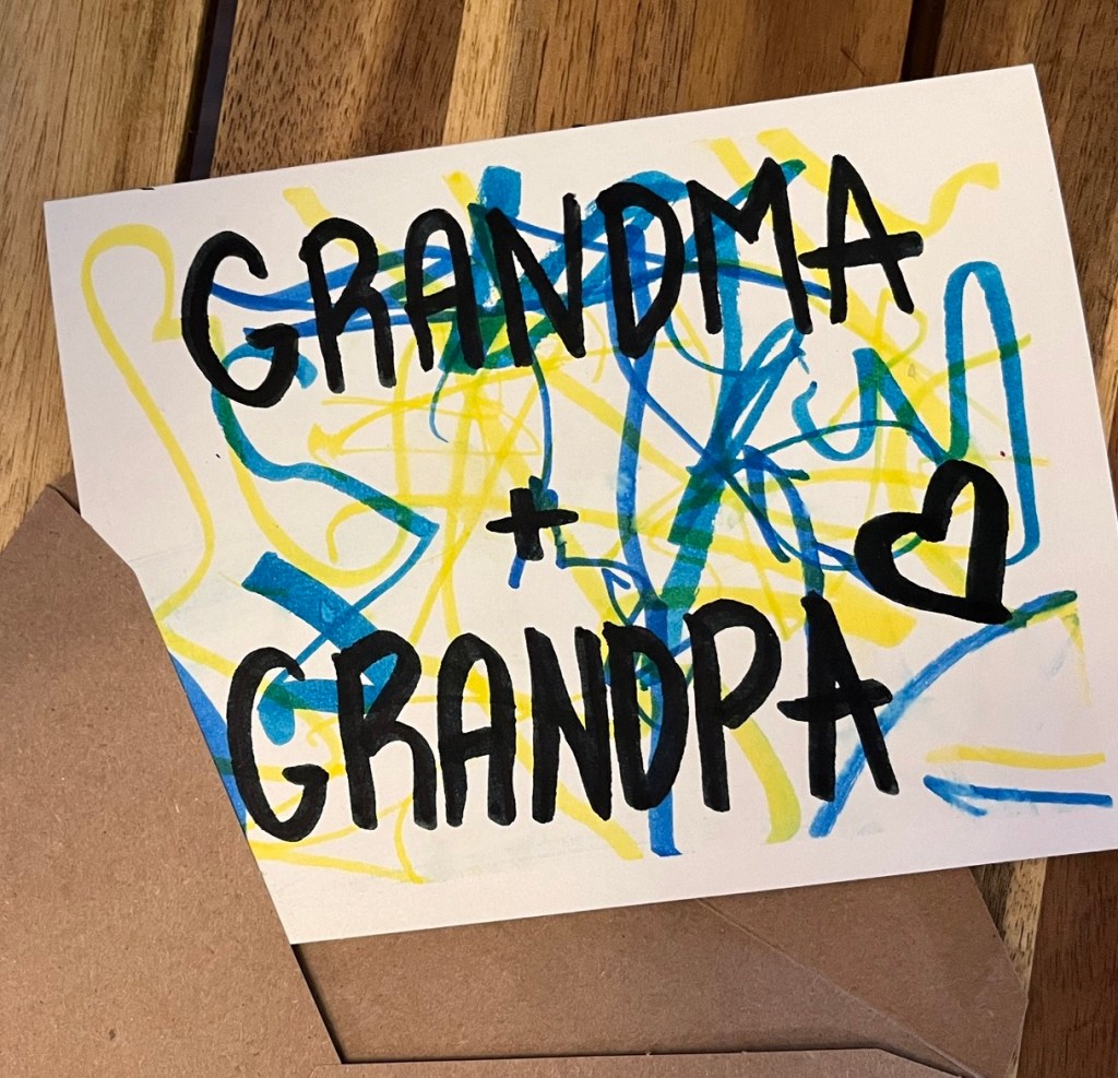 Logan also made a card for his grandma and grandpa! He picked out the colors. He gave it to them with his present from last week.