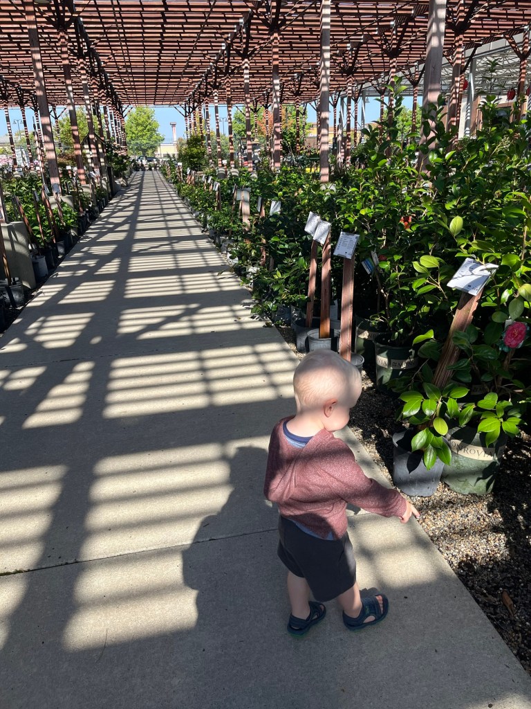 We then went to our local Green Acres Garden Center! Which Logan usually loves to walk around in, but today he was more interested in the rocks that were between the plants. We did find a new plant to add to our collection though!