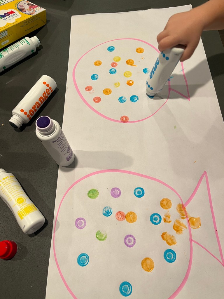 Unlike the craft above, this was not as structured. I still encouraged him to stay within the circles of the gumball machine, but he had a larger area to work with.