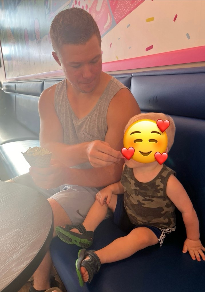 Logan was so excited! Mom got Rocky Road and Dad got mint chip, Logan got to have tastes of ours!