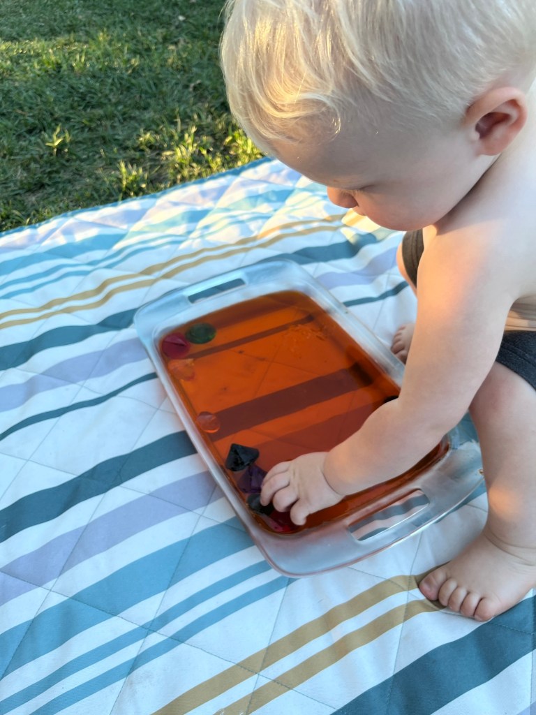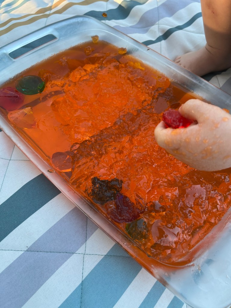 Very messy, sticky and cold- but Logan loved it, so that’s all that matters I guess. After eating the jello the other day, he took one look at this and just tried to eat fist fulls of jello 😂