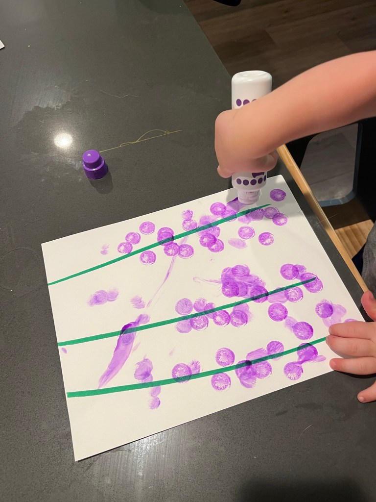 Wanted to include some of our paint dotters this week and decided on letting Logan create some lavender. Again, I turned the paper so that the tops were closest to him so the petals were primarily at the top.