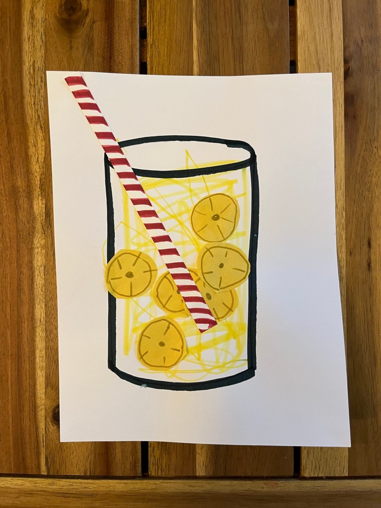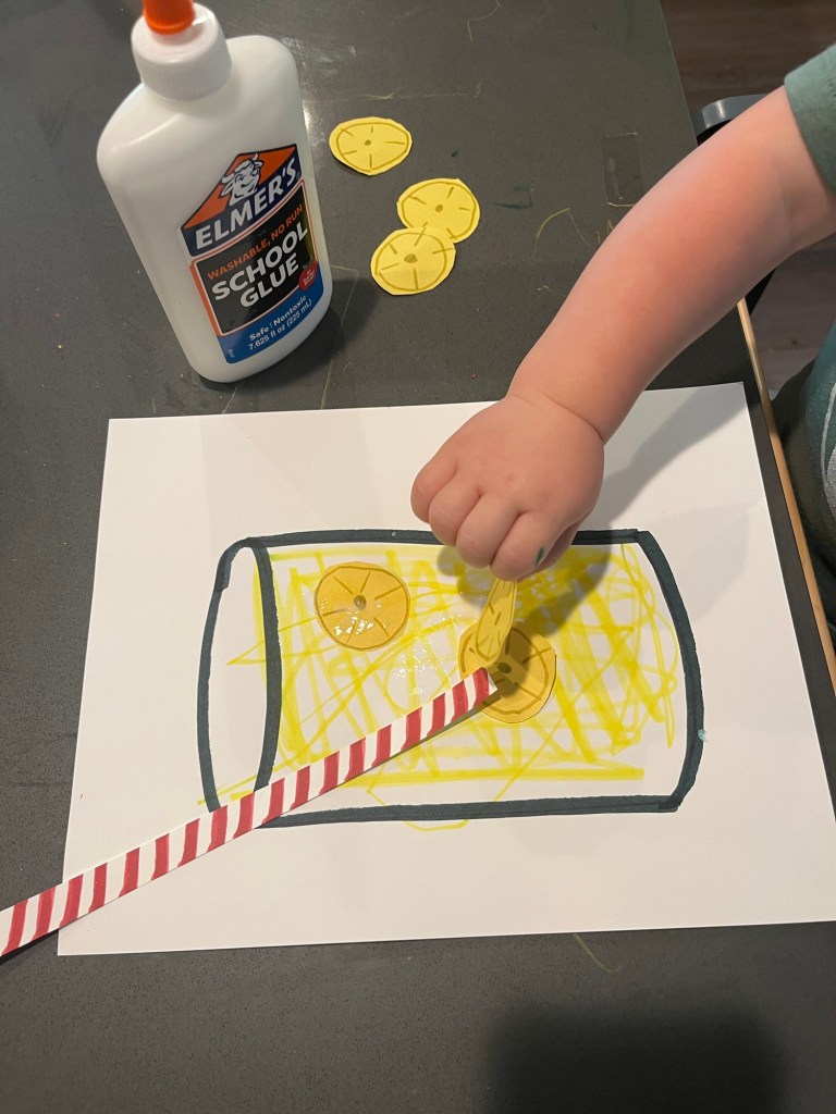 Every week I have been challenging Logan with a more “structured” activity. This one he was instructed to color and glue the objects inside the cup- look how well he did! Still a big fan of glue over here so I created some lemons and a straw for him to glue within the lemonade.